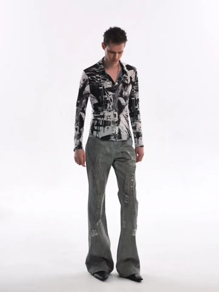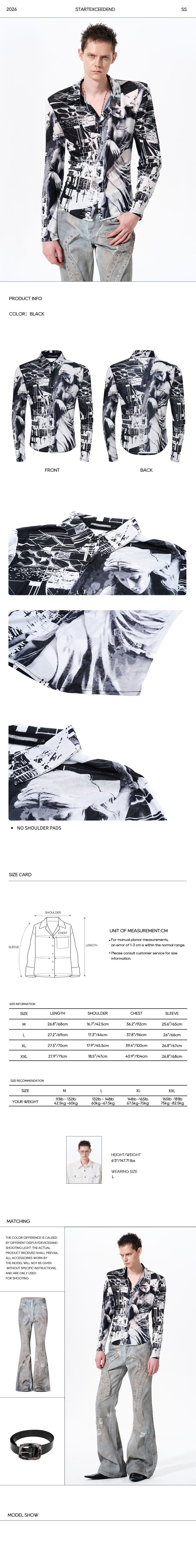 Blurring the lines between classical art and modern streetwear. This long-sleeve shirt acts as a wearable canvas, featuring a striking all-over print of classical statues colliding with abstract, grunge-inspired graphics. Crafted from premium, lightweight sheer mesh, it offers a breathable, skin-hugging fit with a bold translucent effect. Whether layered under a dark blazer or worn as a daring standalone top, it adds an instant layer of avant-garde sophistication to any outfit.