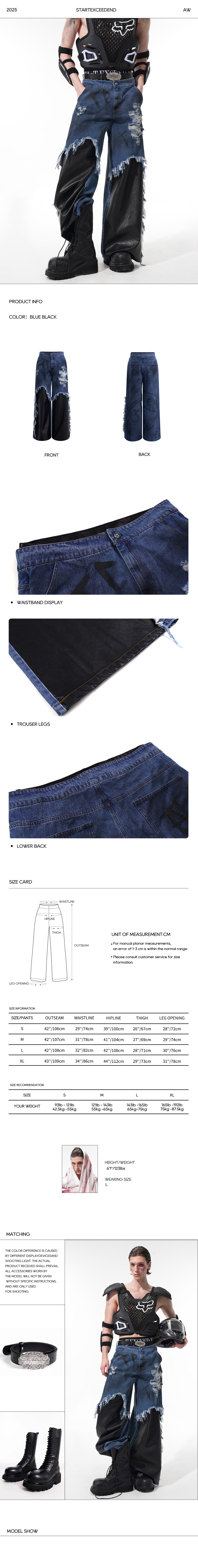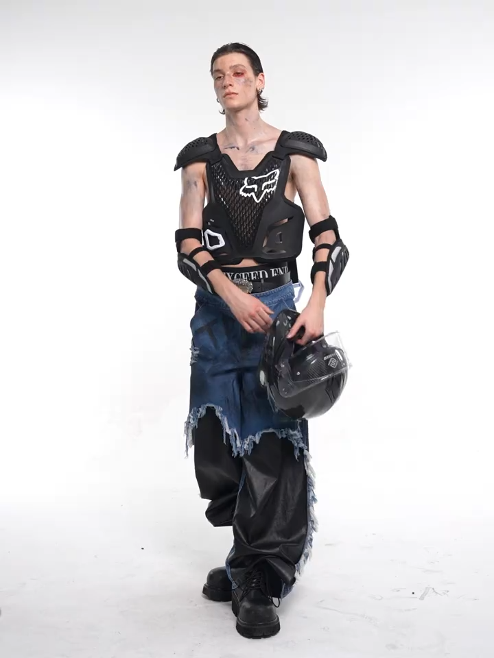 Break all the rules with the Deconstructed Hybrid Wide-Leg Jeans. A fearless experiment in texture, this piece from START EXCEED END fuses vintage workwear with industrial edge.
