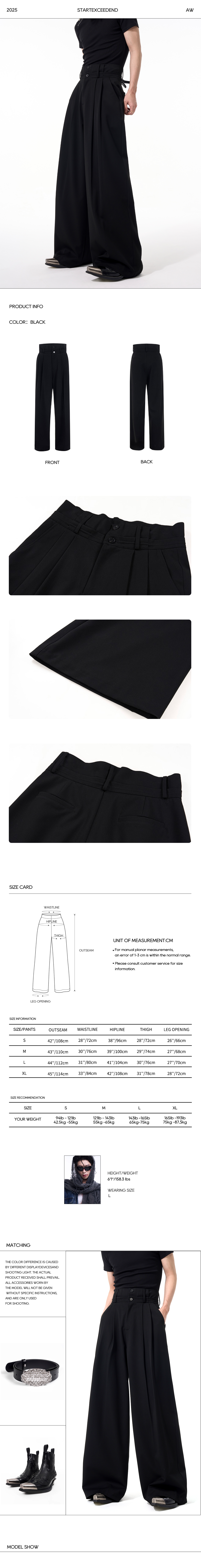 Redefine your silhouette with the DOUBLE BUTTON PLEATED WIDE LEG TROUSERS. A masterclass in relaxed tailoring from START EXCEED END.
