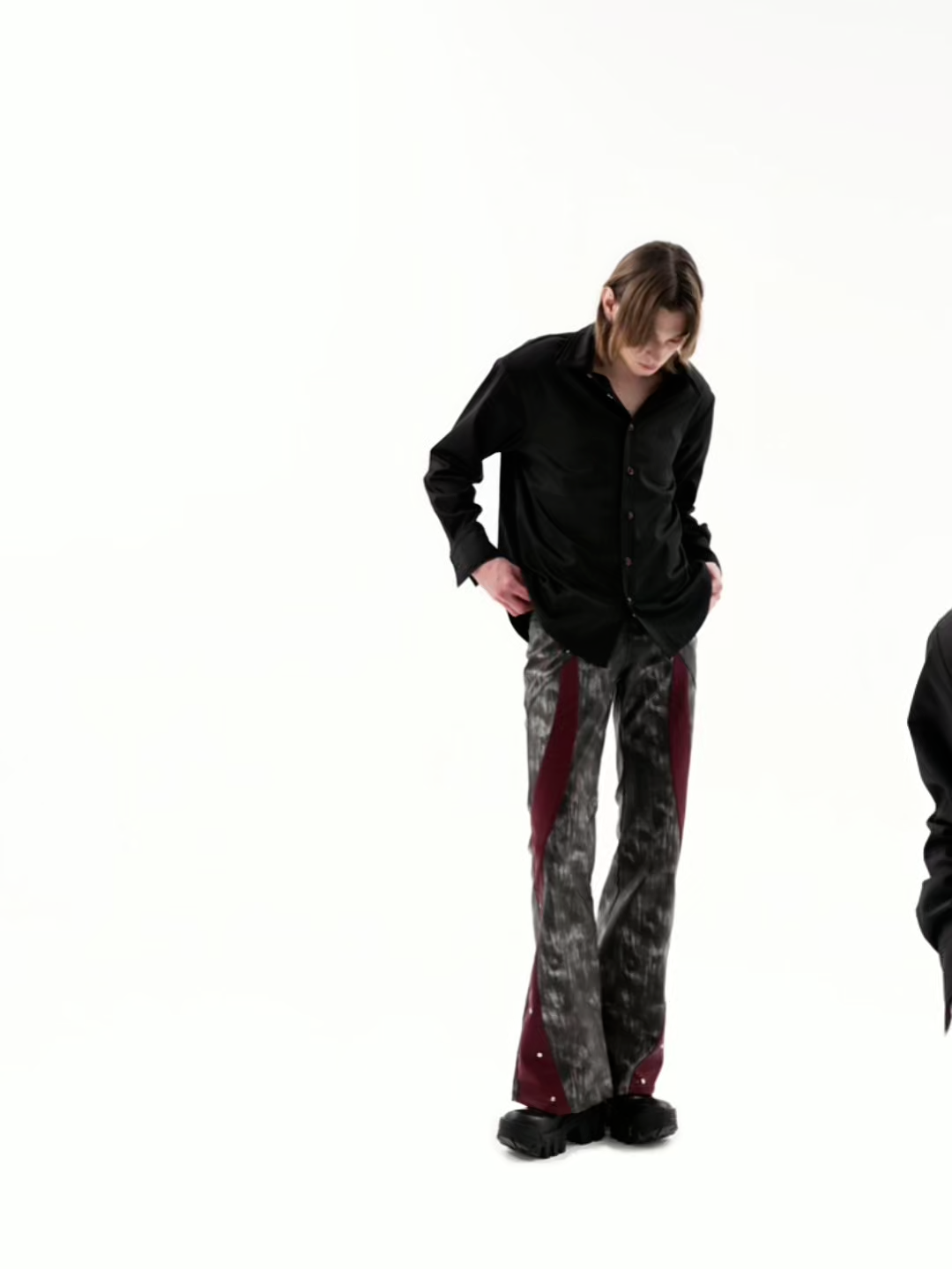• Details: Signature double-layer collar, red gemstone buttons, concealed placket finish