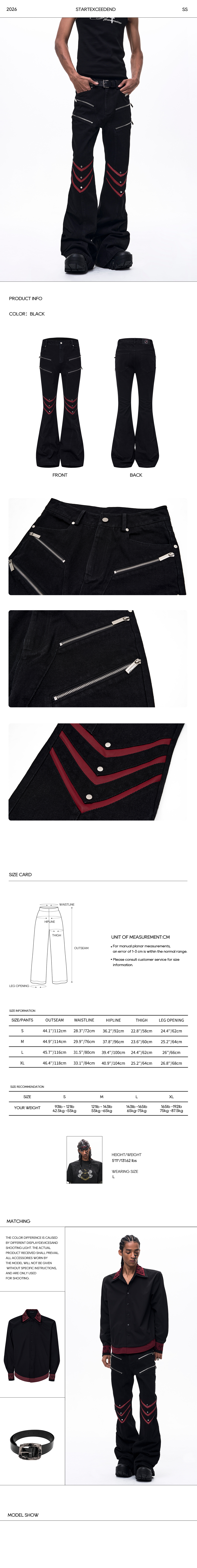 • Fit: Slim fit through the thigh with a subtle flare from the knee (bootcut/slim flare), designed for a modern, edgy profile.