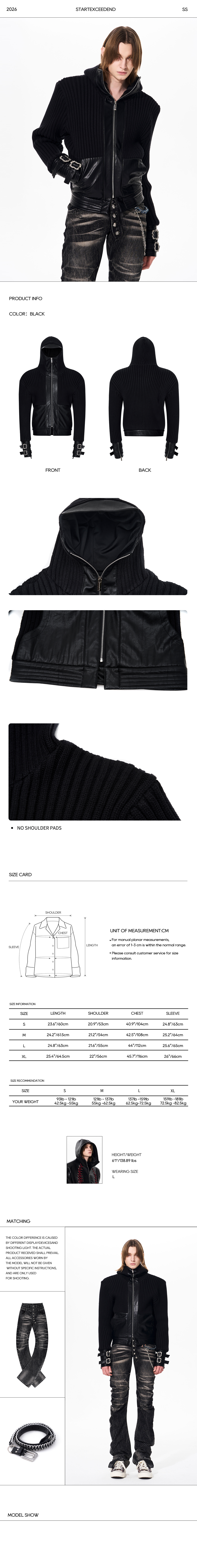 • Material: Heavy Ribbed Knit / Premium PU Leather Accents