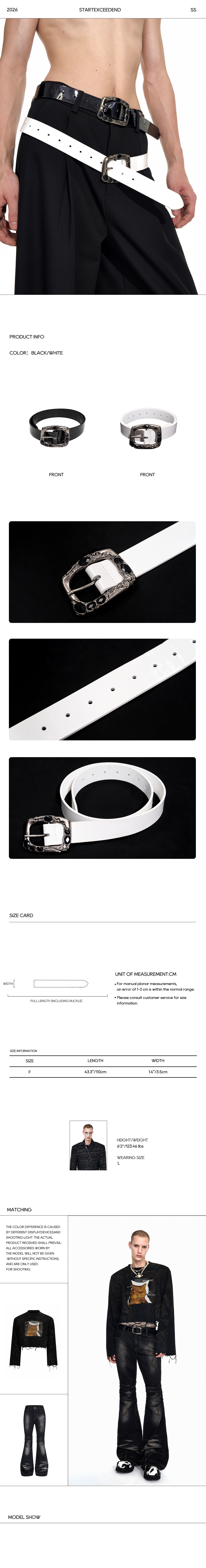 • Details: Distressed "melted" metal buckle, black gemstone insets, punched holes