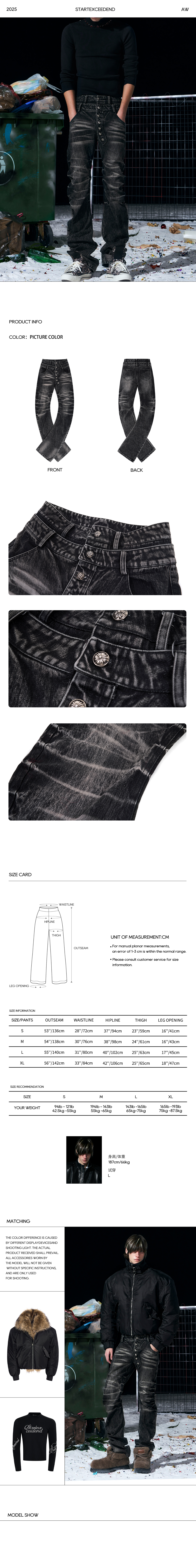 These jeans are defined by their aggressive "mud wash" fading and heavy whiskering, giving them an authentic, lived-in look. The standout feature is the architectural double-layered waistband with an exposed multi-button fly, adding a punk edge to your waistline. Cut with an elongated inseam, they create the perfect "stacked" effect at the ankles, designed to drape effortlessly over your favorite boots or chunky sneakers.